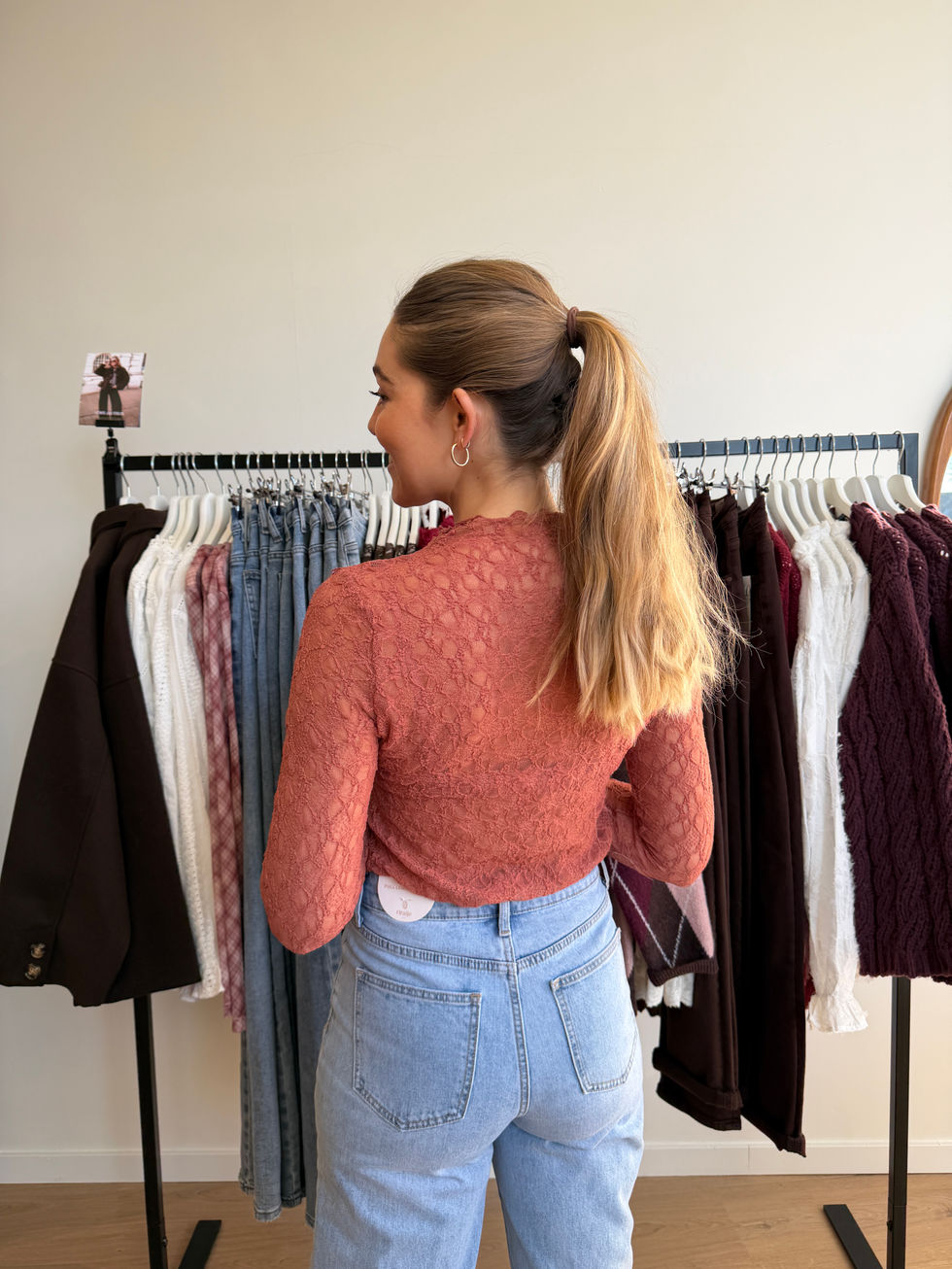 - Mooie kanten top met opstaande hals;